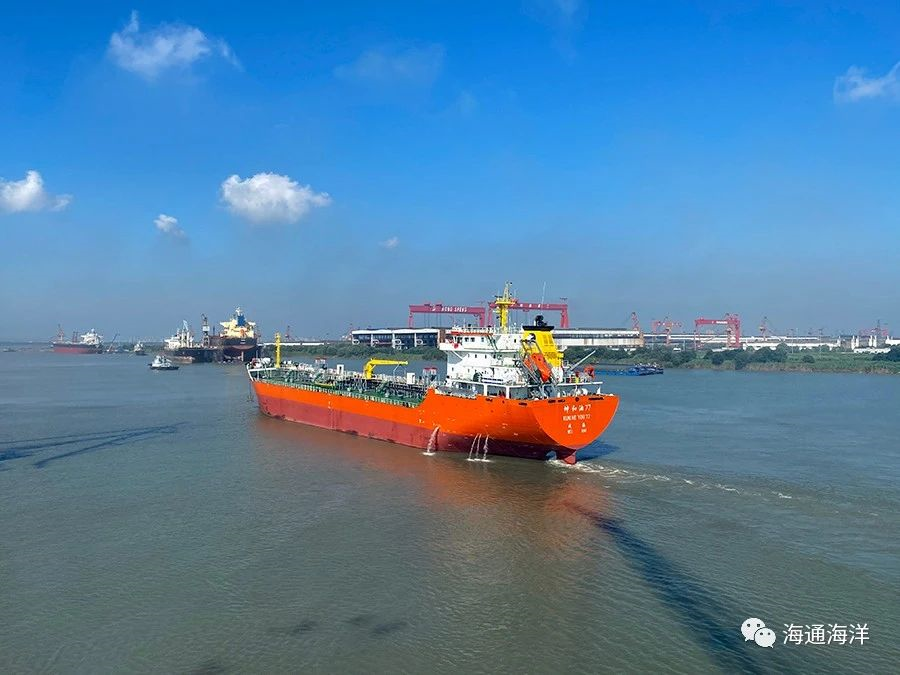 7月18日,由江苏海通海洋工程装备有限公司建造的一艘13520吨成品油船——“坤和油77”,顺利交付,扬帆起航。
