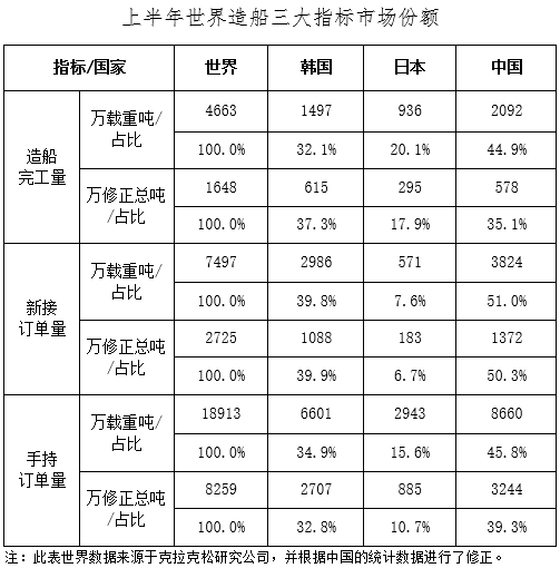 上半年,我国造船三大指标国际市场份额均保持在四成以上,造船完工量、新接订单量、手持订单量以载重吨计分别占世界总量的44.9%、51.0%和45.8%;产业集中度不断提高,造船完工量前10家企业占全国75.7%,比2020年底提高5.1个百分点;新接船舶订单前10家企业占全国79.5%,比2020年底提高5.3个百分点;手持船舶订单前10家企业占全国71.4%,比2020年底提高3.4个百分点。龙头企业竞争能力进一步提升,分别有6家、6家和6家企业进入世界造船完工量、新接订单量和手持订单量前10强。