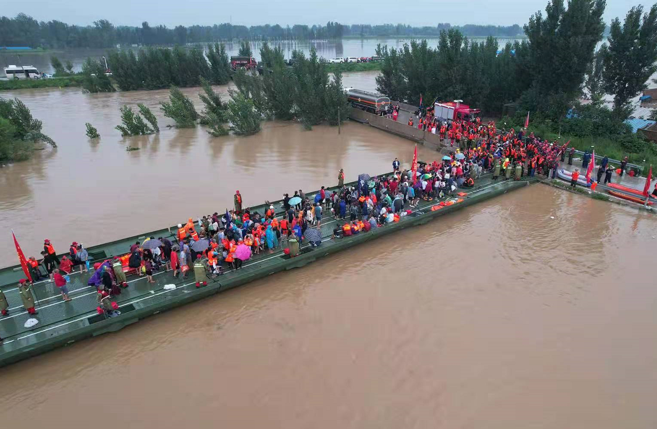 7月21日,中国船舶集团旗下中船应急紧急调集动力舟桥与抢险突击队,奔赴河南参与救援。7月22日晚,经过一夜的持续奋战,两台动力舟桥架设完成实现快速水上机动。