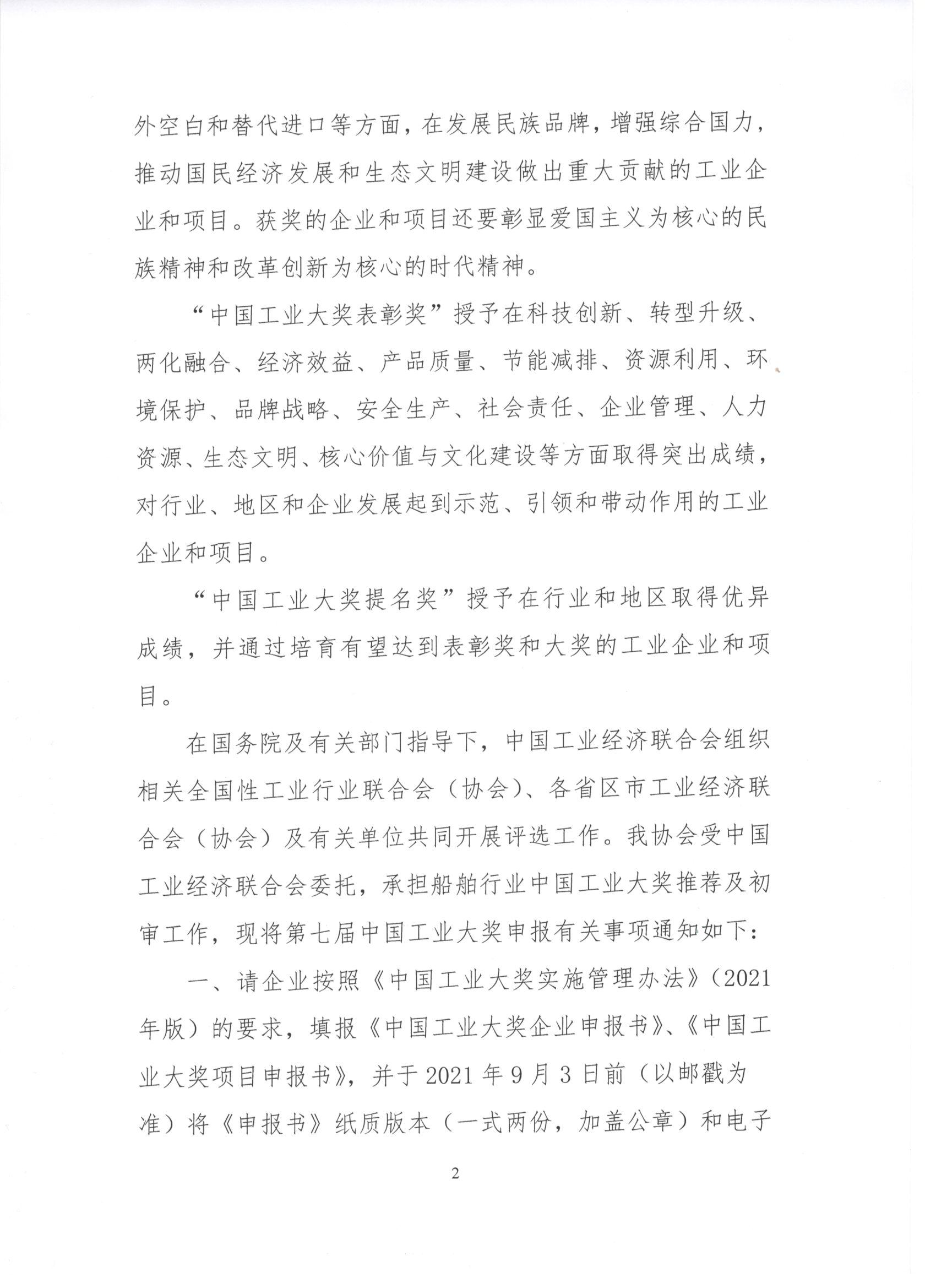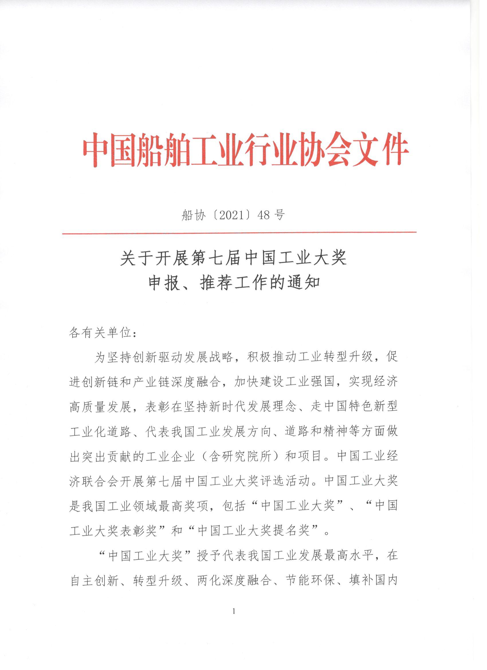 关于开展第七届中国工业大奖申报、推荐工作的通知