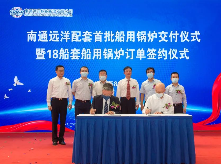 2021年8月18日,南通远洋船舶配套有限公司成功举办首批两船套船用锅炉交付暨18船套船用锅炉订单签约仪式。这标志着南通远洋配套在船舶成套设备类产品制造领域开始迈出新的步伐,企业核心竞争力进一步增强。