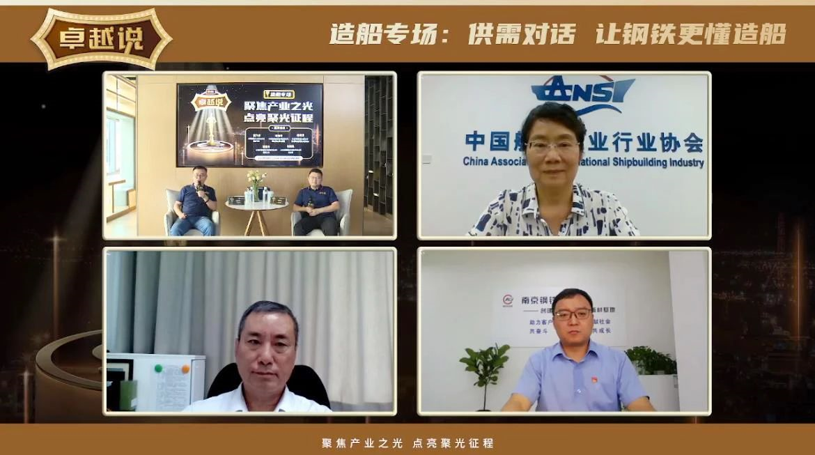 8月25日,由中国物流与采购联合会钢铁物流专业委员会、中国金属材料流通协会钢铁产业互联网专委会联合指导,卓钢链承办的公益项目“聚光行动-卓越说直播栏目”首场直播活动——造船专场《供需对话,让钢铁更懂造船》圆满举行。中国船舶工业行业协会、中国船舶集团物资有限公司、南京钢铁股份有限公司等单位受邀参加会议。会议由卓钢链董事CEO潘富杰、副总裁沈建强主持。