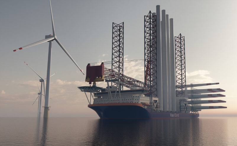 9月30日,中集来福士与荷兰Van Oord公司签订1+1条大型风电安装船总包建造合同。该项目是全球最新一代风电安装船,由丹麦设计公司Knud E. Hansen设计,交付后将用于欧洲风场施工服务。该船船长175.1米,甲板面积超过7000平方米,可供135人同时在海上作业居住,主吊起重能力超过3000吨,拥有4条三角桁架桩腿,主尺度、升降能力、起重能力均居同类产品之首。同时,该船配备大容量甲醇储舱和甲醇双燃燃料主机,应用选择性催化还原技术,二氧化碳排放量将降低78%,氮氧化物排放将减少到绝对最低限度;配备约5MW电池包,极大地提高了能耗效率,并降低运营燃料消耗。