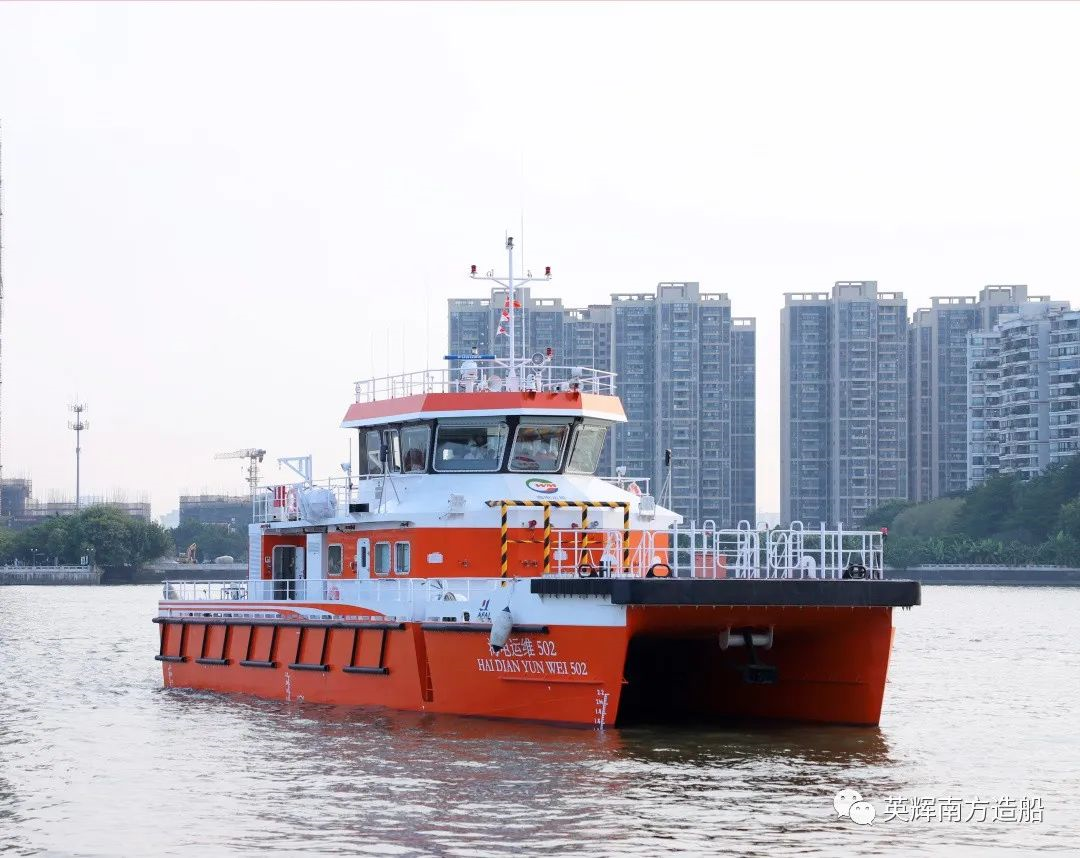 10月14日,英辉南方为福建海电运维科技有限责任公司建造的“海电运维502” 顺利完成交付并驶离英辉南方码头,全速奔赴广东阳江沿海,投身服务于海上风电事业。