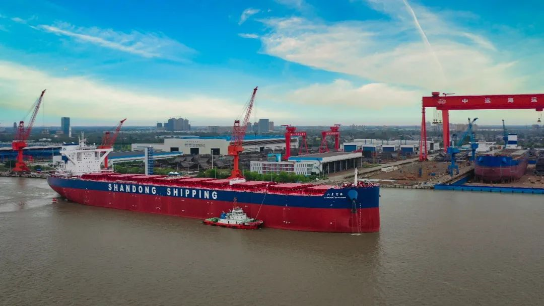 10月26日,扬州中远海运重工为国银租赁和山东海运建造的第2艘21万载重吨散货船“山东富强”轮顺利交付并于同日开启首航。