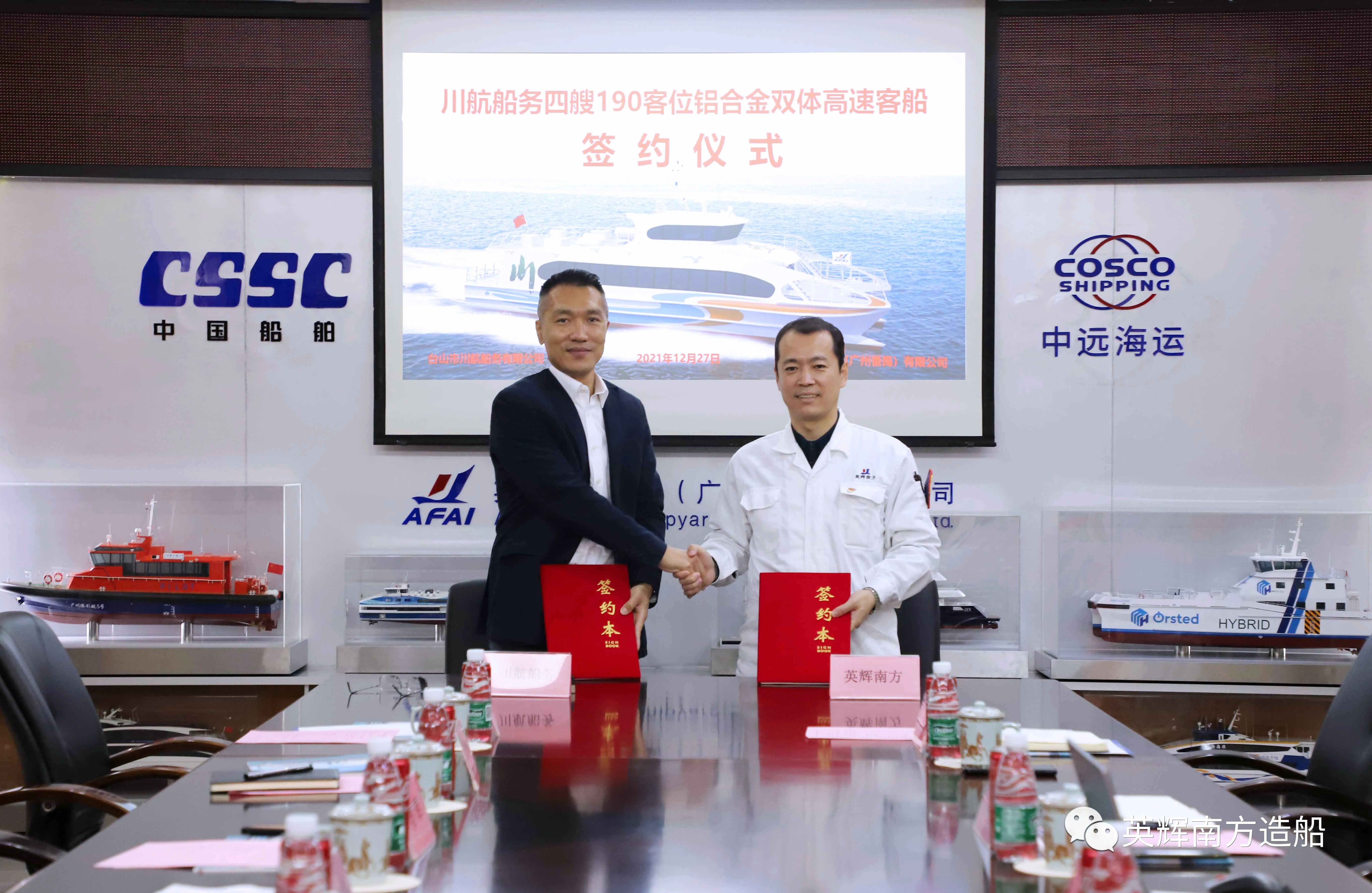 12月27日,英辉南方与台山市川航船务有限公司签订了4艘190客位铝合金双体高速客船设计建造合同。