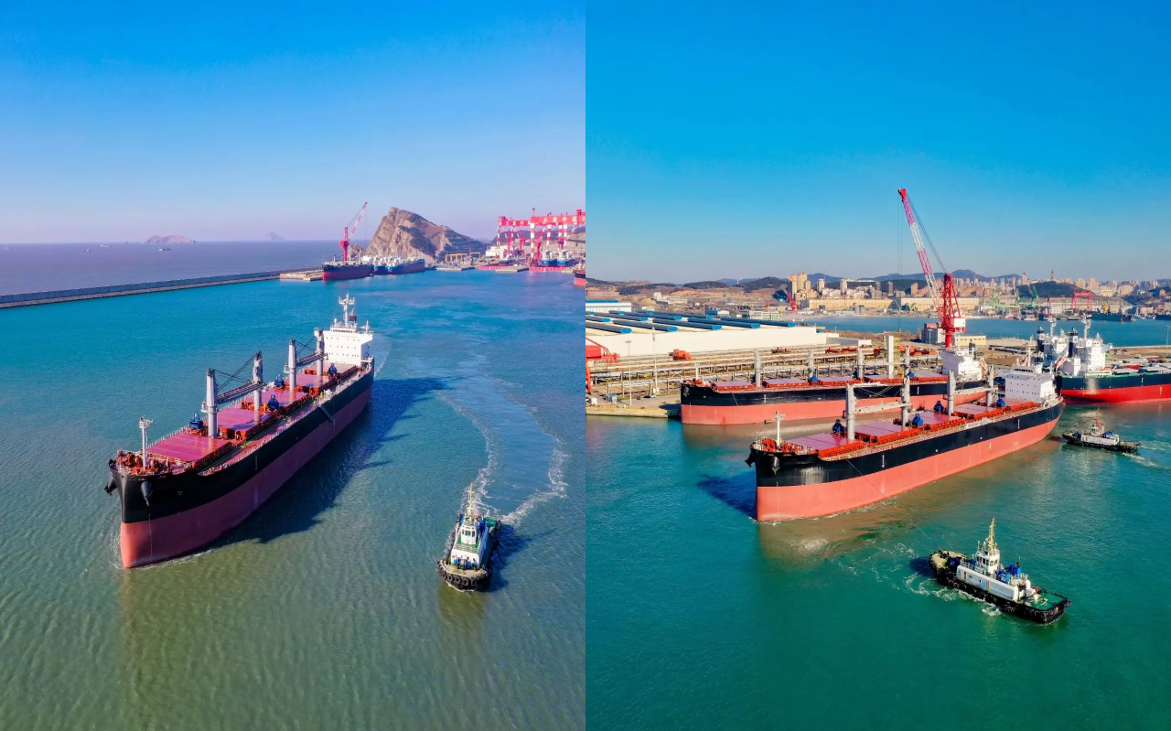 大连中远海运川崎同日交付两艘6.1万吨散货船