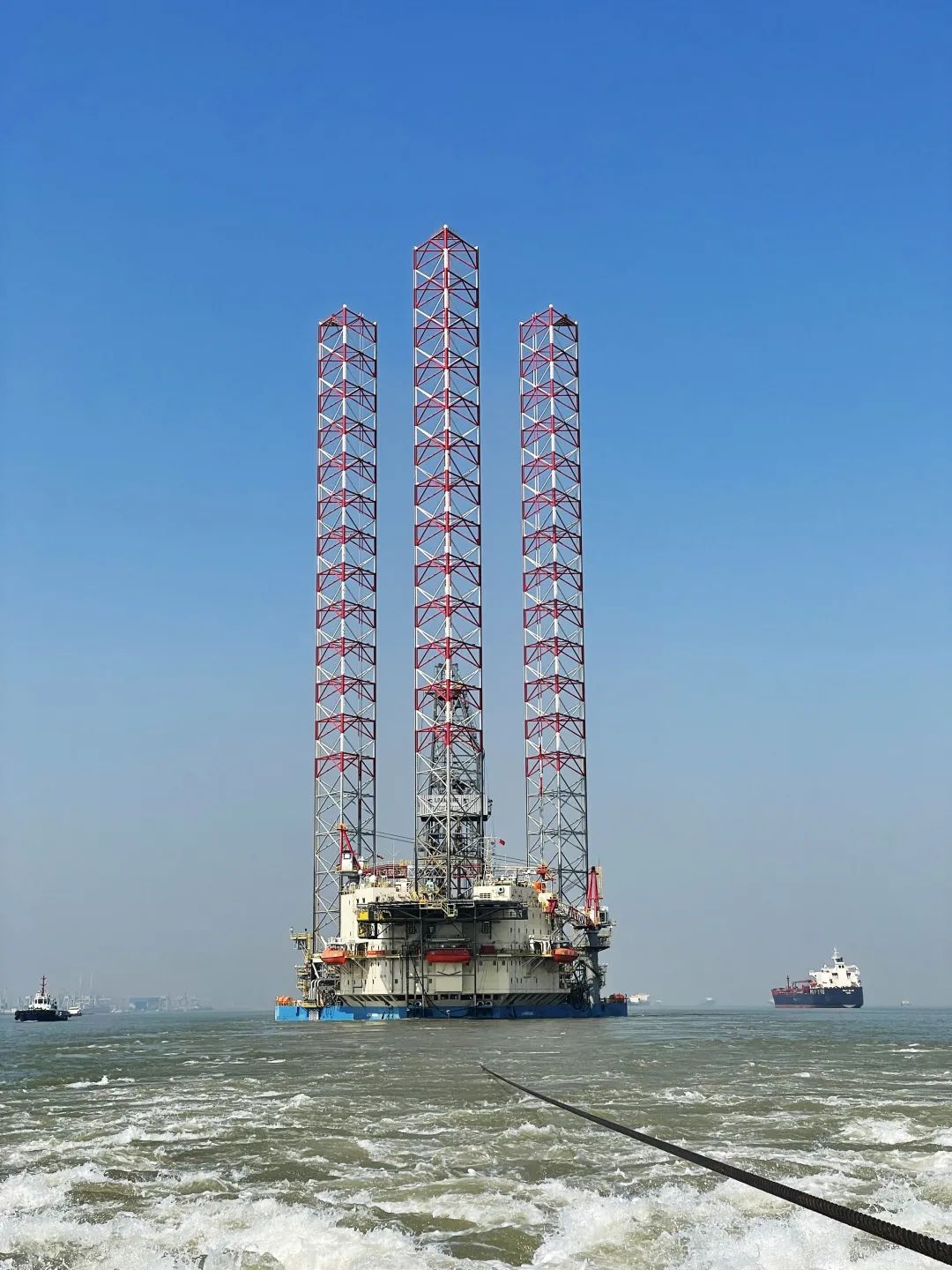 2月26日,国海公司运营管理的“振海六号”钻井平台在完成设备激活、取证、改造等一系列准备工作后,顺利交付中海油服,起拖前往井位执行钻井任务。