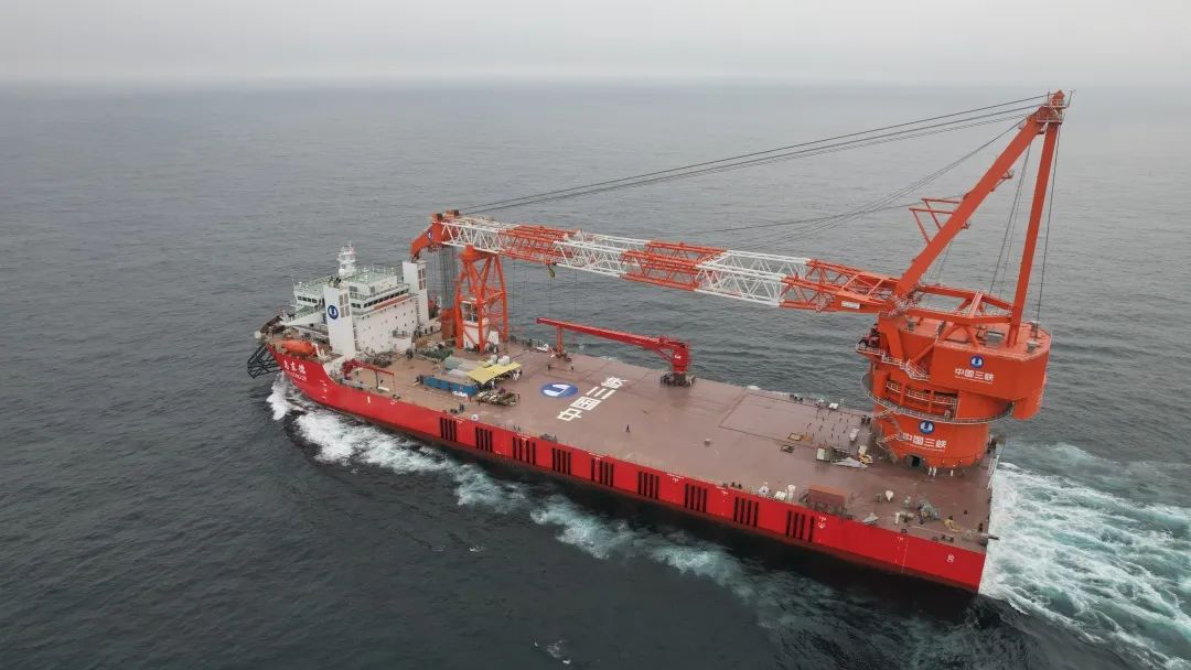 3000吨全回转起重船“乌东德”号是国内首艘“运输+起重”一体化海上风电施工船,是集深远海风电基础运输和起吊施工为一体的专业化风电施工船机。该船总长182米,型宽46米,型深15米,甲板开敞面积6200平方米、装载能力超1万吨,每次出海作业最多可携带4套2000吨级风机基础,运输能力相当于一艘3万吨级的甲板运输船。该船最大起重量可达3000吨,可满足10兆瓦及以上海上风电基础运输及安装需求,单船就可完成港口装载、海上运输、吊装及打桩等主要工序,功能齐全、作业效率高,可有效降低工程建设成本,满足海洋工程施工作业的高行业标准。
