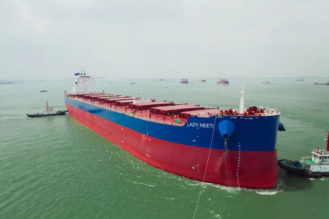 本次交付的“LADY NEETI”轮总长299.95米,型宽50米,型深25米,结构吃水18.5米,设计航速14.5节,入劳氏船级社。该轮装配有预旋导管和消涡鳍组合节能装置,主辅机配备脱硝装置和混合式脱硫洗涤系统,满足最新排放要求,是一型设计先进、低碳环保、经济节能、安全可靠,具有领先竞争优势的船舶产品,与凭借节能+智能荣登英国皇家造船师学会世界名船录的21万载重吨散货船“惠智海”轮属于同系列产品。