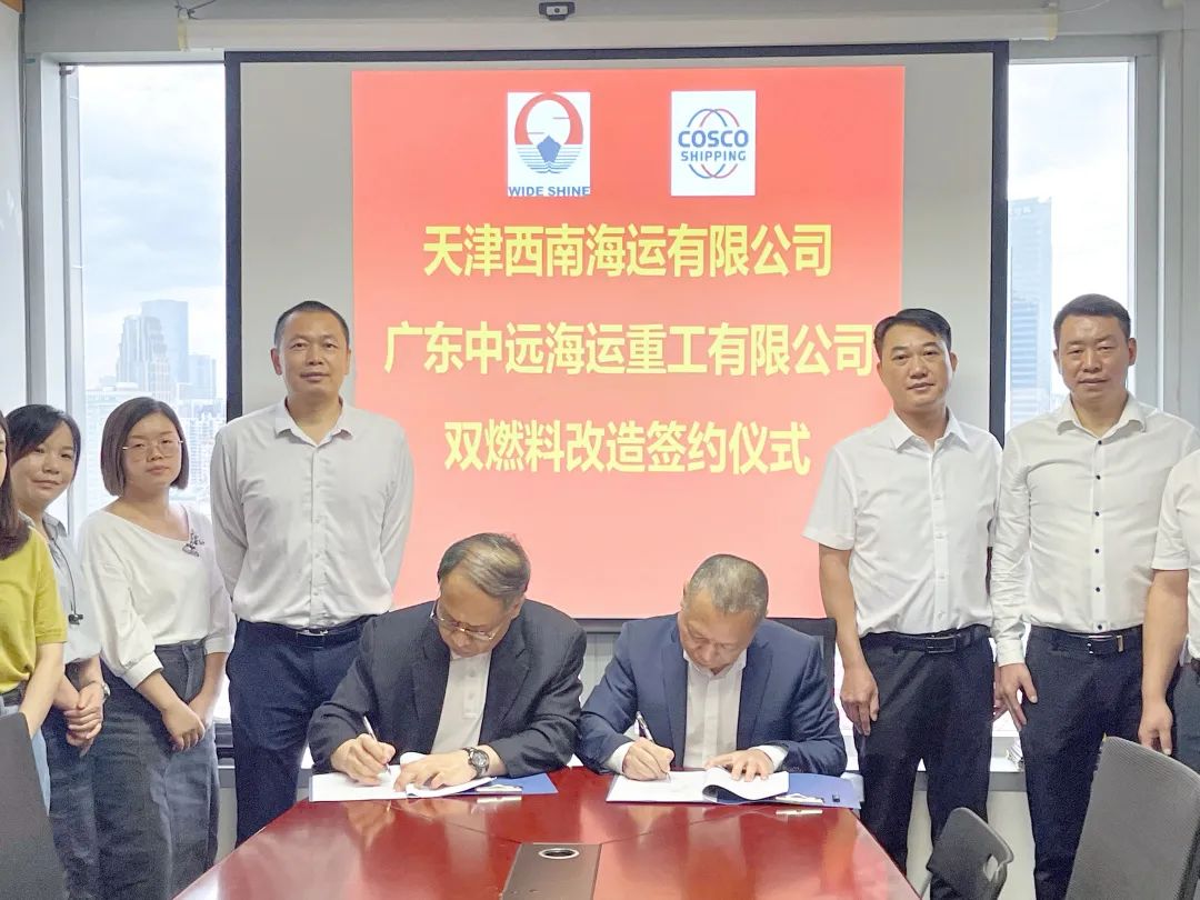 8月11日,广东中远海运重工和天津西南海运在广州中信广场签署系列超大型液化气船(VLGC)双燃料动力系统改装项目合同。