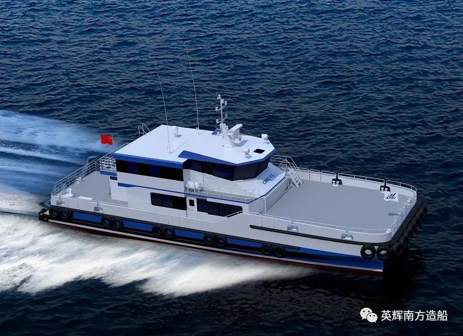 该项目船舶是英辉南方的主建船型和重点产品,船舶总长30.25米,总宽9.50米,型深3.30米,吃水1.7米,设计航速25节,续航力大于500海里,近海航区,入级中国船级社(CCS)。