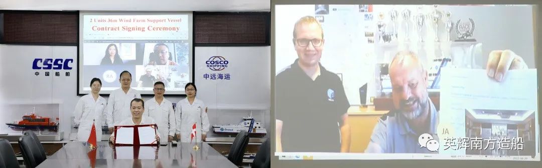 8月29日,英辉南方造船(广州番禺)有限公司与丹麦MHO海上风电运维公司签订两艘高端风电运维船合同,这是英辉南方继2021年交付两艘丹麦高端风电运维船后的再次与 MHO公司合作,也是英辉南方承接的第4艘和第5艘交付欧洲的高端风电运维船,奠定了英辉南方在海上风电高端运维船领域的领先地位。本次与欧洲船东再续前缘,体现了国外客户对英辉南方的认可和信任,充分彰显了“英辉南方”在国际高性能铝合金船舶市场上的品牌认可度和知名度。
