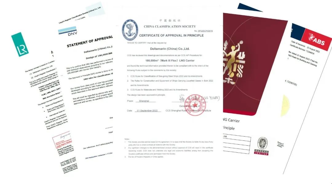 9月2日,双方联合开发的两型LNG运输船均获得了中国船级社(CCS)、劳氏船级社(LR)、美国船级社(ABS)、挪威船级社(DNV)和法国船级社(BV)五大船级社的AIP(Approval In Principle)认证。