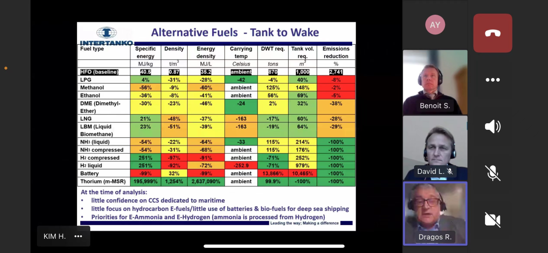 船舶动力与清洁燃料议题,就船舶清洁燃料应用、清洁燃料船舶主机及相关动力技术、清洁燃料供应链等问题开展讨论。ICS技术专家Sunil Krishnakumar在发言中指出,当前船舶使用清洁燃料及清洁燃料相关技术,需要完善的MARPOL、SOLAS等国际规则规范与之相匹配,同时要重视对船员的教育培训,尽可能减少或避免安全事故。挪威研究机构Sintef Ocean的Elizabeth Lindstad博士发言指出,通过对挪威现有船队的数据模拟分析,风帆辅助推进系统结合船体的优化设计,有助于短途和沿海运输的中小型船舶的碳减排,同时帮助船舶减少5%-10%的运输成本。ASEF技术专家韩国现代重工OH Sehun发言指出,韩国造船业普遍认为氨、甲烷、甲醇是未来重要的船舶清洁燃料,许多造船企业集团已经制定了相应的船舶动力技术路线图,包括单燃料机和多燃料机(两种燃料以上)。国际油船船东协会(INTERTANGO)Dragos Rauta表示,当前全球清洁能源生产供应能力,还不能完全满足航运业实现2050零排放的战略目标,业界应该尽快明确船舶应用清洁燃料的时间表,并支持能源行业提升清洁能源的生产供应水平。