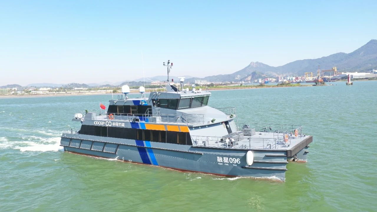 该船为全铝合金双体结构,总长32.3米,型宽10米,采用双机双桨推进,航速不小于25节。该船根据南海海域海况设计,具有良好的操纵性、耐波性和抗风浪能力,可满足复杂海况下风电运维作业以及人员、物资运输等。