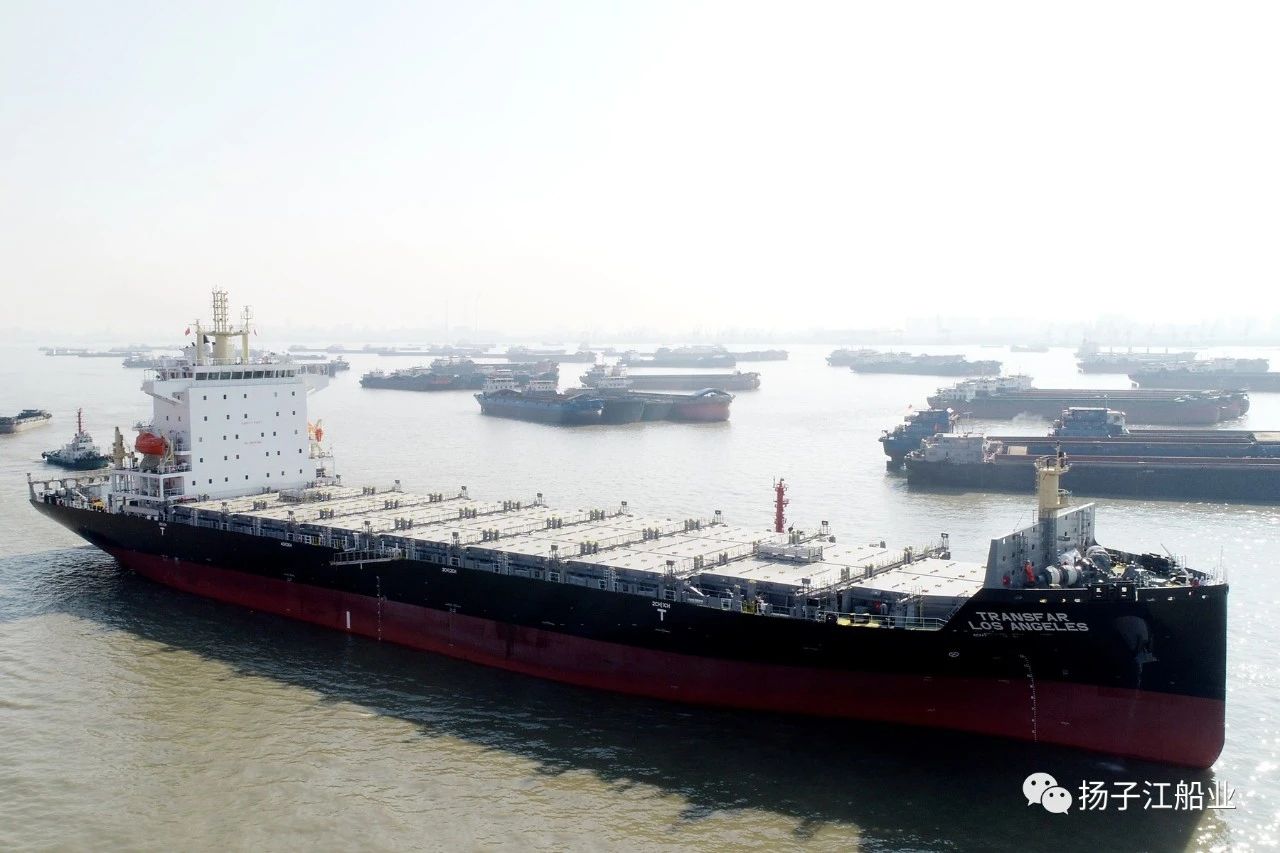 1月3日,扬子江船业集团扬子长博造船为致远航运建造的1800TEU集装箱船“TRANSFAR LOS ANGELES”轮缓缓驶离船厂码头,开启交付后的首航。这是扬子江船业在新的一年,完工交付的首制船。