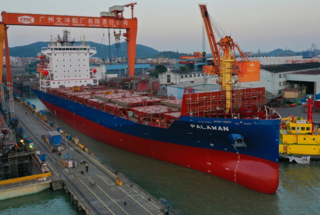 中船黄埔文冲1900TEU集装箱船出坞