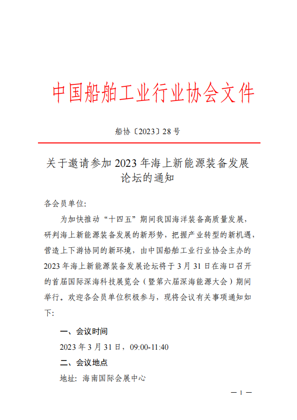 关于邀请参加2023年海上新能源装备发展论坛的通知