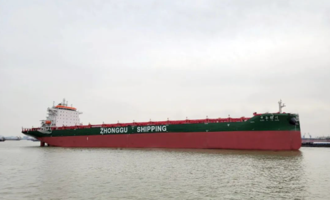 新扬子造船为中谷海运建造的4600TEU集装箱船“中谷银川”轮交付离厂