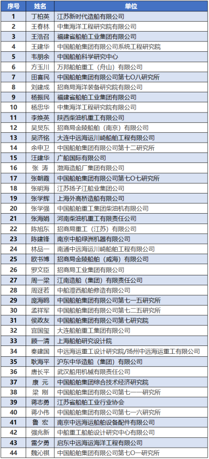 中国船舶工业行业协会标准化专家委员会委员名单