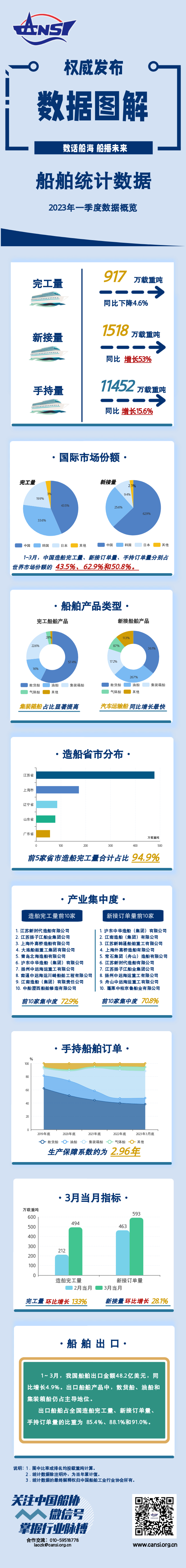 一图读懂丨2023年1~3月船舶统计数据