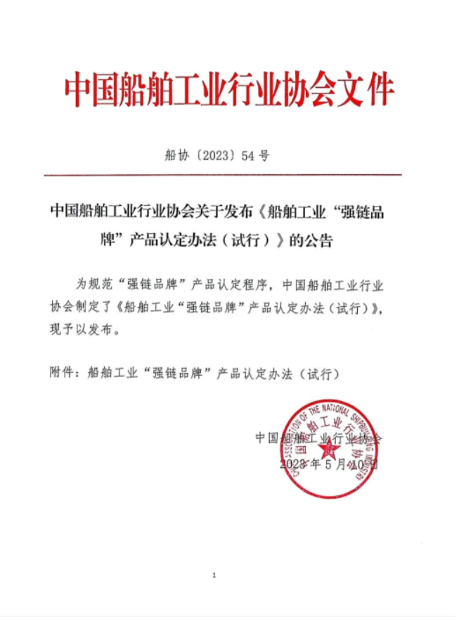 关于发布《船舶工业“强链品牌”产品认定办法(试行)》的公告
