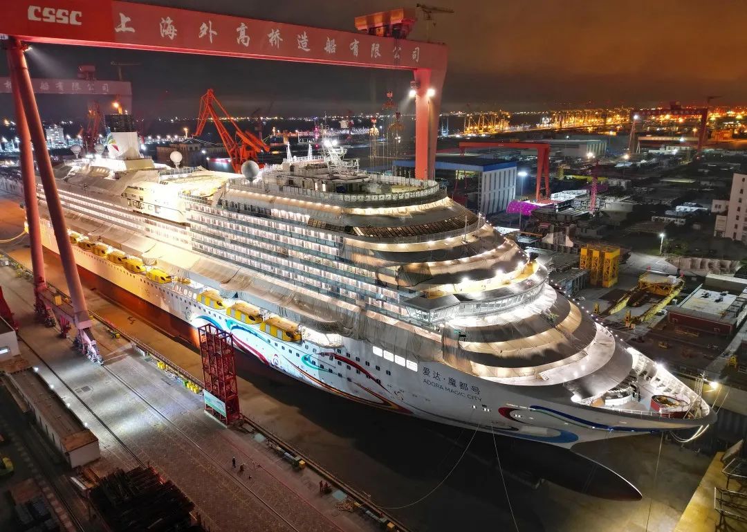 2019年10月18日,“爱达·魔都号”在开云体育APP下载 正式开工点火进行钢板切割,全面进入实质性建造阶段。2020年11月10日,全面转入坞内连续搭载总装阶段,实现了从详细设计、生产设计到实船总装搭载的重大跨越。2021年10月18日实现全船贯通,2021年12月17日实现坞内首次起浮。该船一步一个脚印,顺利实现出坞重大节点,展现了我国船舶工业攻坚克难、全力以赴完成这一巨系统工程的力量、意志和实力。