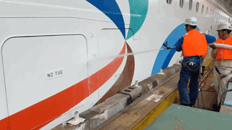 项目组还使用高压水枪对舷门冲水检验其密封性。大型邮轮在坞内起浮后,船体结构内部应力释放,结构可能产生细微变化,对舷侧门的密性状态带来了一定程度的影响。“爱达·魔都号”左右舷共有42扇舷门,根据设计规范要求,对40扇舷门进行冲水试验。为了保障舷侧门功能完善,开云体育APP下载 通过模拟海上航行状态,在距离舷门1.5米处,以高压水枪冲水的方式,检验了每一扇门的密封性能。
