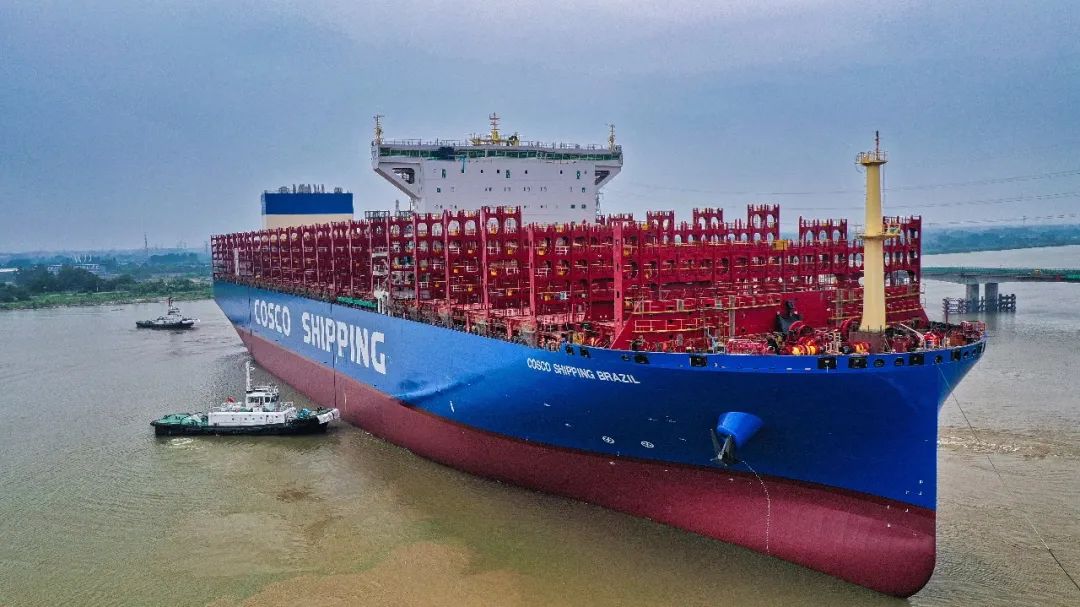 扬州中远海运重工首制14000TEU集装箱船顺利出坞