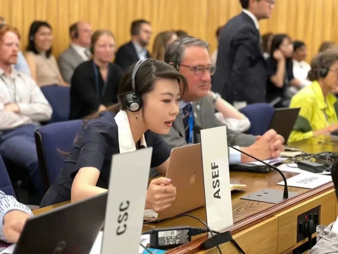 中国船协国际部、活跃造船专家联盟(ASEF)理事谢予,中国船舶集团有限公司第十一研究所海事部部长、ASEF秘书长汪璇,中国船舶集团有限公司第十一研究所博士、ASEF温室减排工作组专家张云嵩,代表ASEF参加此次MEPC80会议,并赞助IMO茶歇活动。ASEF与挪威、韩国、日本、利比里亚联合共提支持船上碳扑捉技术作为IMO减排战略过渡技术方案的提案,被此次会议采纳,并作为基础文件,在ISWG-GHG16会间会做单独议题进行继续讨论。ASEF秘书长汪璇在会间评论指出,作为代表国际造船工业的国际组织,ASEF将积极组织本组织成员开展技术研讨、技术筛选,致力于为IMO减排战略提供工业界的技术信息和可行方案。