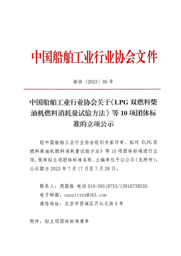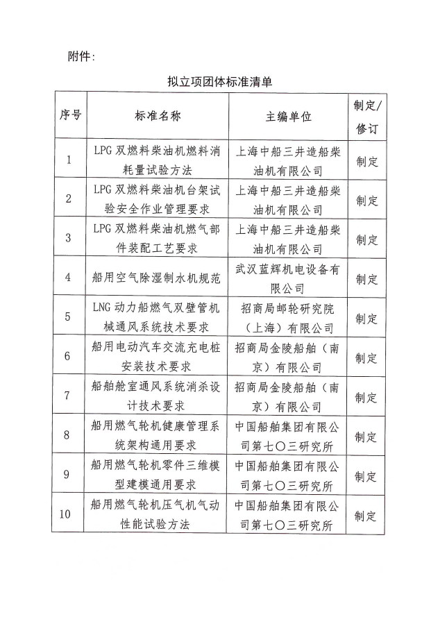 附件:中国船舶工业行业协会关于《LPG双燃料柴油机燃料消耗量试验方法》等10项团体标准的立项公示