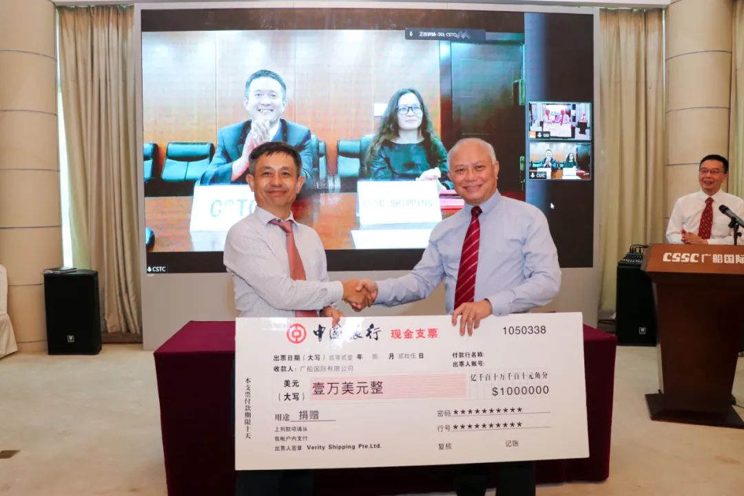 8月25日、26日,由中国船舶集团旗下广船国际联合中船贸易为新加坡万邦集团(IMC)和中国船舶租赁建造的5.5万吨成品油/化学品油船8号船“MARITIME VERITY(海上·真理)”轮和为工银租赁建造的4.97万吨成品油船2号船“永信”轮分别实现“云交船”,标志着两大系列共12艘MR油船项目圆满收官。