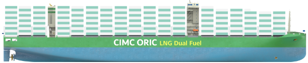 该系列集装箱船是中集ORIC自主研发设计的具有完全知识产权的新一代万箱级双燃料集装箱船,也是可以通过土耳其海峡进入到黑海的最大型集装箱船舶。此型船采用双岛式布置,总长299.95米,船宽45.6米,型深25.0米,设计吃水12.5米,结构吃水17.5米,设计航速20节,配备了同级最大的C型LNG燃料储罐,LNG模式和燃油模式的续航里程均可满足经典中欧或中美航线的单次往返需求,保证了船东营运计划的灵活性。还具备清洁环保、低碳排等特性,EEDI能效设计指数比国际海事组织(IMO)严苛的第三阶段排放基准线还要再降低约50%;并且,研发团队还充分考虑其全生命周期的综合性能表现,经评估,在1900FEU超高冷箱负荷情况下,CII碳排放强度评级至2040年仍可维持在健康营运区间内,远远领先于市场同类船型。
