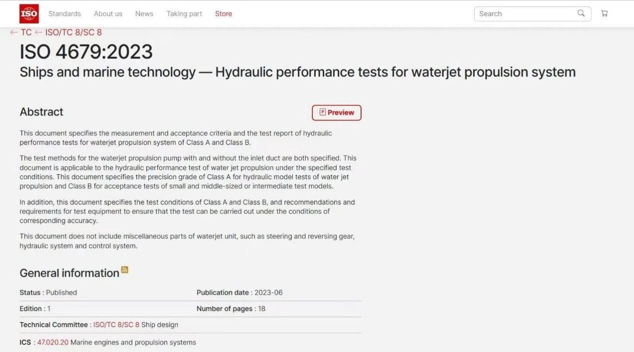 我国主导制定的首个喷水推进领域国际标准发布!
