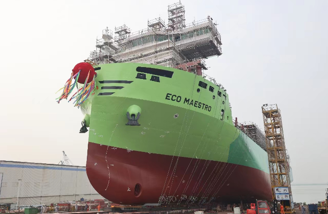 国内首艘!新大洋造船首制支线甲醇双燃料集装箱船顺利下水