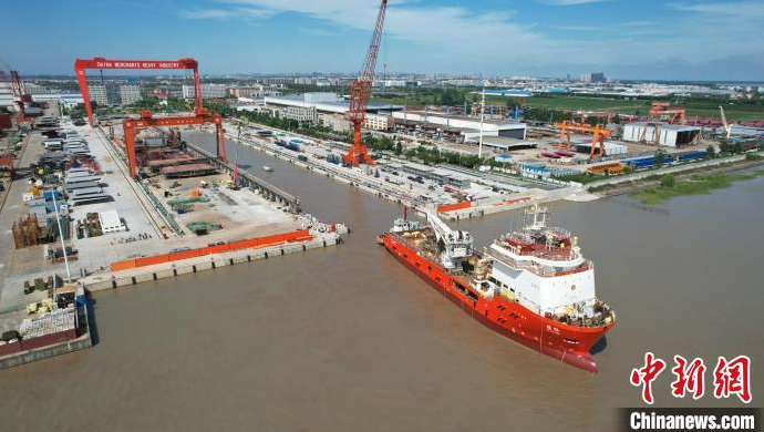 中新网记者4日从交通运输部广州打捞局获悉,该局大型溢油回收船“德畅”轮近日在招商局重工(江苏)有限公司海门基地船坞内下水。