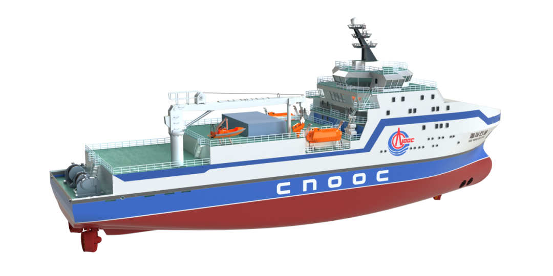 推进性能优越。该船前瞻性的采用全电力推进形式,配备两台电力推进全回转推进器,一台伸缩推进器与两台艏侧推,动力定位能力达到DP 2级,航速可达13节以上。该船还可实现在较小半径内的原地回转、横移等操作,操纵性与机动性优越。