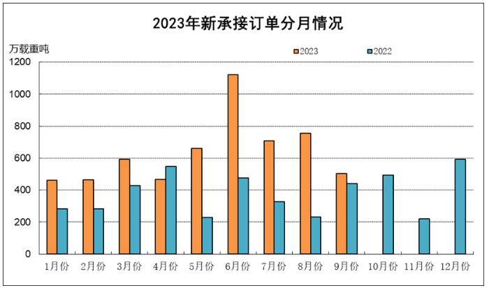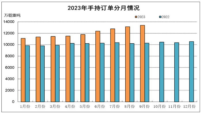 1~9月,全国造船完工量3074万载重吨,同比增长10.6%;新接订单量5734万载重吨,同比增长76.7%。截至9月底,手持订单量13393万载重吨,同比增长30.6%。