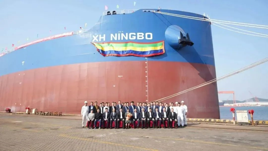 2021年中信金租联合协海集团与北海造船签署2艘21万吨散货船,本次交付的“XH NINGBO”轮是北海造船的主建船型,船舶总长300米,型宽50米,型深25.2米,设计航速14.5节,9舱9口,舱容量为同类型船中最大,具有“绿色、环保、节能、安全、可靠”的优势特点。航速、油耗、操纵性等各项性能指标达到国际先进水平。目前,公司已交付该型船舶18艘,手持37艘,手持订单居全球同型船舶首位。