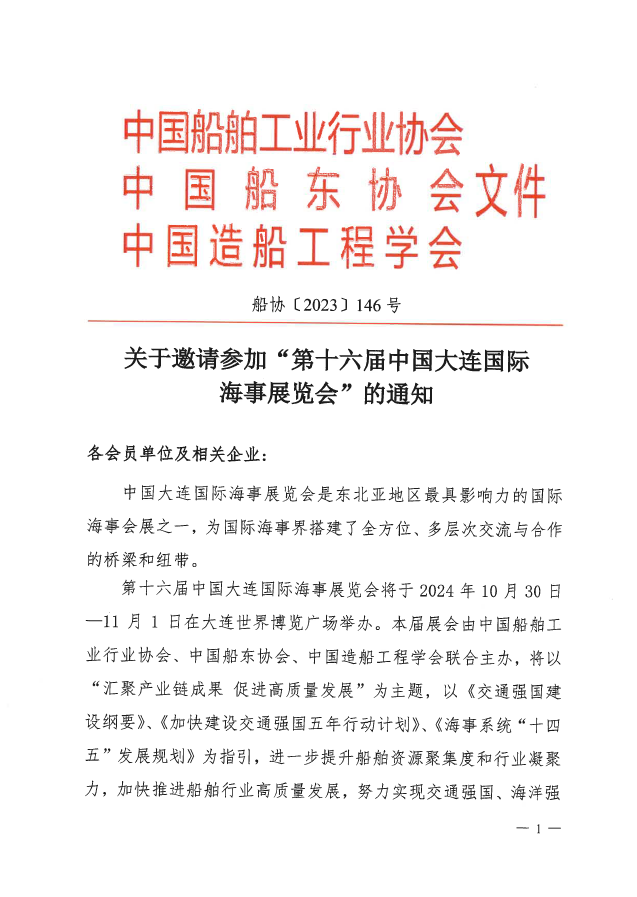 关于邀请参加“第十六届中国大连国际海事展览会”的通知