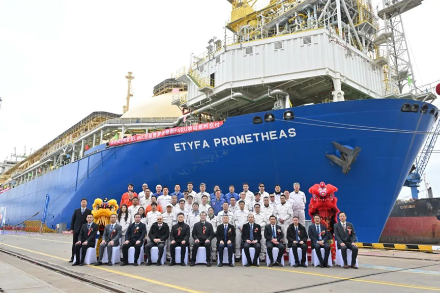 此次交付的FSRU以西方神话中给人间带来火种和希望的“普罗米修斯”命名,该轮船长296米,宽46米,存储137000立方米LNG,其再气化能力为4x105 MMSCFD。设备配置先进,将服务于“一带一路”倡议沿线重要国家塞浦路斯瓦西利科斯港LNG终端项目。该项目是塞浦路斯近年来最大工程项目,是其国家能源战略的重要组成部分,也是其达成欧盟减排指标、提高天然气发电比例的重要一步,将帮助塞浦路斯减少30%碳排放,并降低15-25%发电成本。