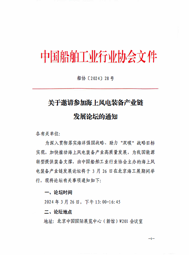 关于邀请参加海上风电装备产业链发展论坛的通知