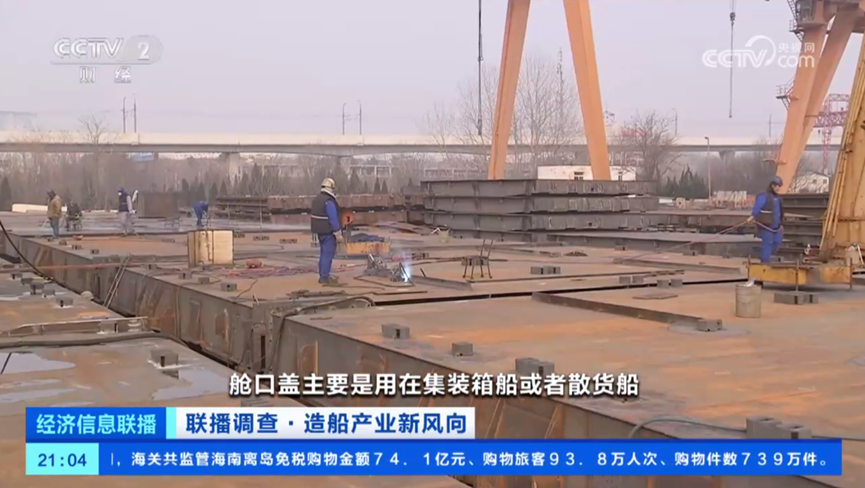 中国船舶大连造船装备公司第一事业部部长 马磊:我们现在所在的现场就是一个大型舱口盖制作现场,舱口盖主要是用在集装箱船或者散货船,起到一个甲板的作用。
