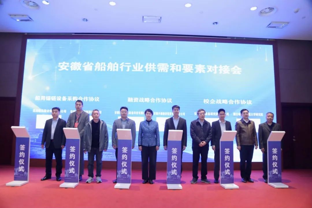 会议期间,安徽海智装备研究院有限公司与烟台哈尔滨工程大学研究院签订校企合作协议,安徽彭工智能装备科技有限公司与安徽兴泰融资租赁有限责任公司签订设备融资租赁合作协议,贵池区船舶基地服务中心、芜湖造船厂有限公司等多家单位签订产品设备合作协议,协议金额约3.9亿元。 (李相聚 供稿)
