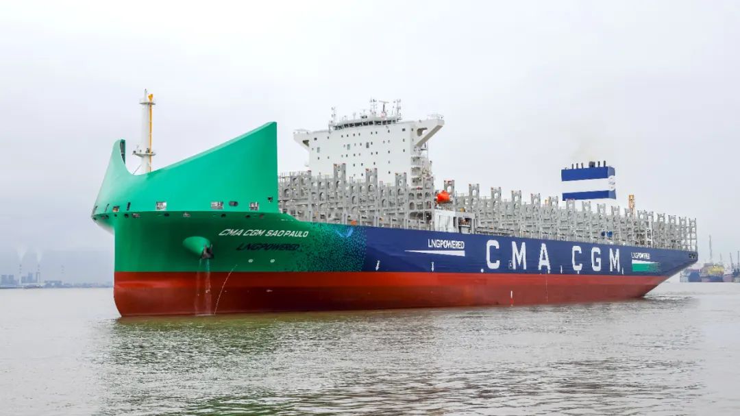 5月23日,由中国船舶集团旗下沪东中华联合中船贸易为法国达飞集团建造的13000TEU液化天然气(LNG)双燃料动力集装箱船系列4号船“CMA CGM SAOPAULO”号,在沪东中华长兴岛厂区命名交付。南美洲东海岸航线又将新添一艘中国“智”造的新一代绿色环保、高效节能型集装箱船,为达飞集团箱船船队绿色转型发展贡献新的中国船舶动能。