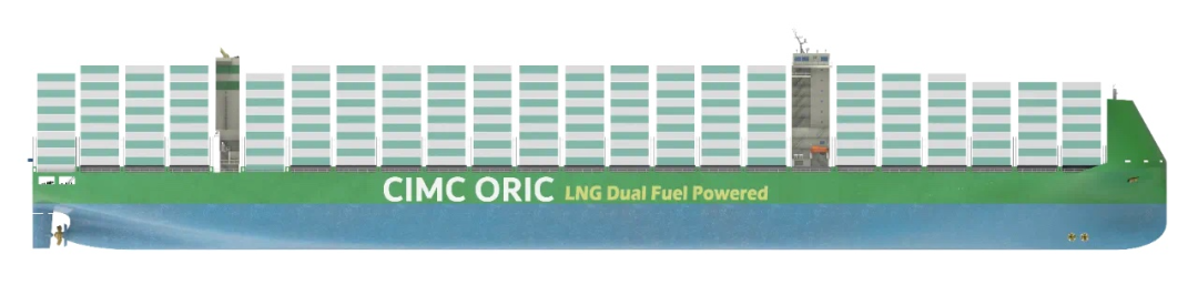 该型船将采用C型LNG燃料储罐,在设计、建造和维护等方面具有更多优势。该型船LNG模式和燃油模式的续航里程均可满足经典中欧或中美航线的单次往返需求,保证了船东营运及加注计划的灵活性。该型船还满足“氨燃料预留” 及“甲醇燃料预留”设计,未来随着船用氨、甲醇燃料成本降低和供给量增加,该型船可通过灵活改装C型舱实现多种燃料的切换,达成零碳排放的远景目标。