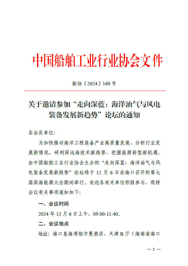 关于邀请参加“走向深蓝:海洋油气与风电装备发展新趋势”论坛的通知