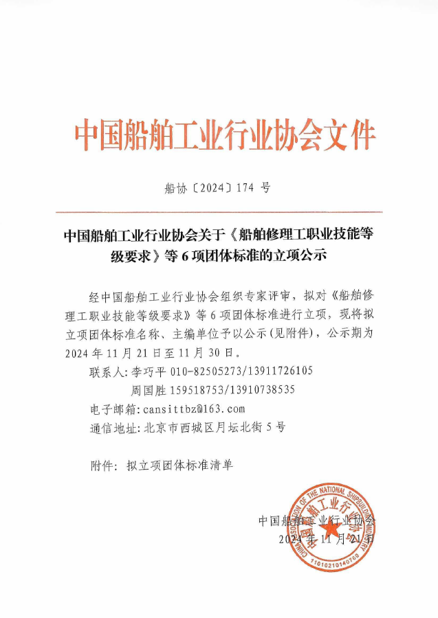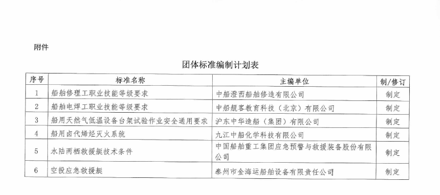 中国船舶工业行业协会关于《船舶修理工职业技能等级要求》等6项团体标准的立项公示