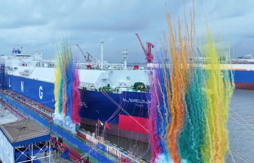 11月25日,中国船舶集团旗下江南造船联合中船贸易为阿布扎比国家石油公司(ADNOC)建造的我国首艘17.5万立方米大型Mark III Flex薄膜式液化天然气(LNG)运输船“AL SHELILA”号提前2个月命名交付,奋力冲刺四季度目标任务,为后续船建造交付奠定了坚实的基础。